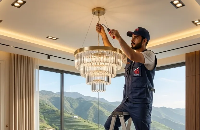 كهربائي بأبها يقوم بتركيب ثريا